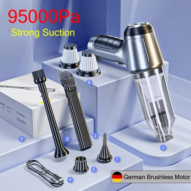 La aspiradora tiene una fuerte potencia de succión de 95000Pa, por lo que es capaz de limpiar a fondo y eficientemente.