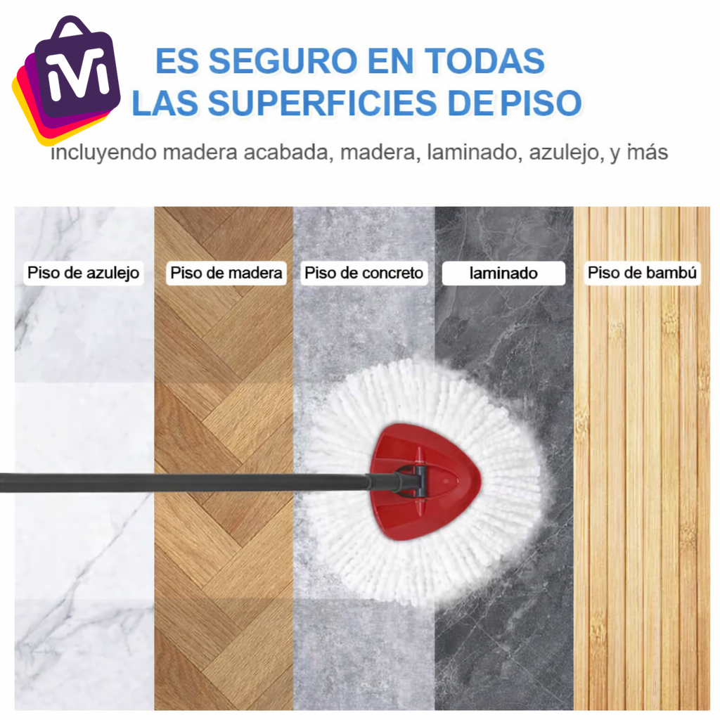 LIMPIEZA EFICAZ El trapero giratorio con balde y escurridor turbo elimina hasta el 99% de las bacterias solo con agua, ofreciendo una limpieza profunda y segura para tu hogar. DISEÑO ERGONÓMICO Incluye un balde resistente con escurridor integrado y pedal, facilitando el lavado y secado de la mopa sin esfuerzo. El sistema giratorio permite una limpieza rápida y eficiente. RECOMENDACIONES DE USO Ideal para pisos de cerámica, madera y porcelanato. Recomendado para uso doméstico y oficinas. Fácil de armar y almacenar.